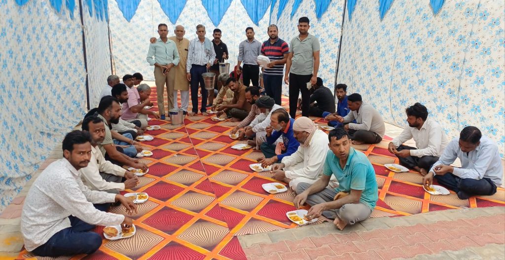 हनुमानगढ़। चैत्र नवरात्र समापन के उपलक्ष में टाउन जंक्शन रोड पर स्थित मां काली माता भद्रकाली मंदिर इच्छा पूर्ण में शनिवार को विशाल भंडारे का आयोजन किया। भंडारे से पूर्व मंदिर पुजारी पंडित अनिल शर्मा द्वारा मां काली की विधिवत पूजा अर्चना व हवन यज्ञ करवाया गया। हवन यज्ञ में मुख्य यजमान पूर्व पार्षद मनोज स्वामी, भारत शर्मा, रोहिताश शर्मा आदि द्वारा आहुतियां डाल शहर की सुख समृद्धि की कामना की गई। इसके पश्चात भंडारे में आने वाले श्रद्धालुओं को छोले पूरी एवं हलवे का प्रसाद वितरित किया गया। इस अवसर पर पूर्व नगरपरिषद उपसभापति नगीना बाई, इंद्र मोहन निनानिया, पंकज शर्मा, यादवेंद्र शर्मा, नवनीत शर्मा, दुर्लभ शर्मा, अरविंद कुमार आदि मौजूद थे।