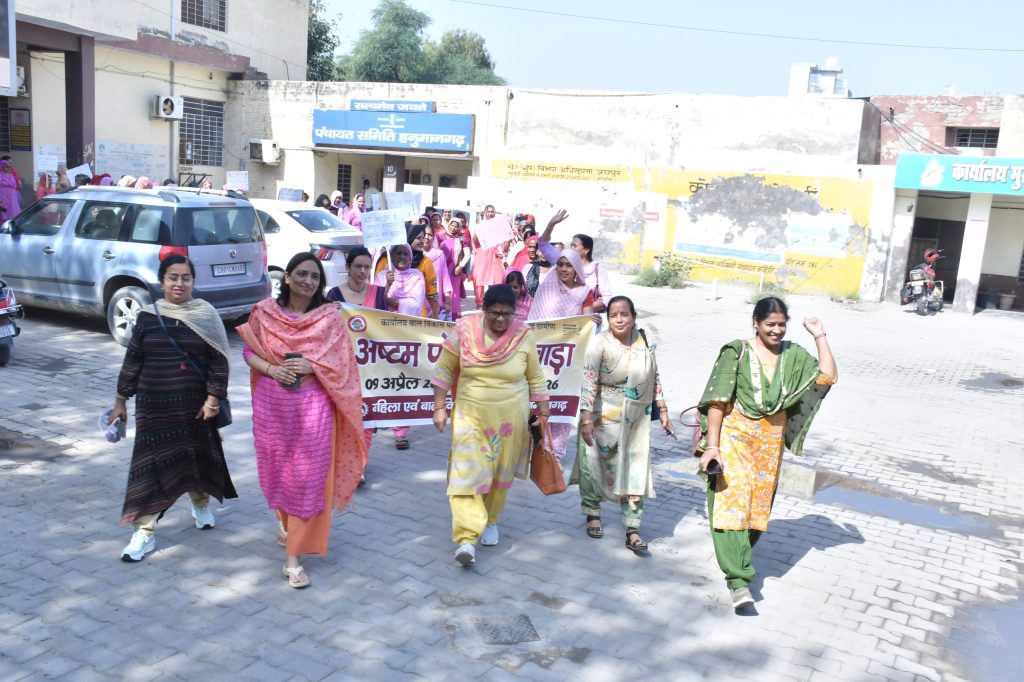 हनुमानगढ़। टाउन में महिला एवं बाल विकास विभाग के तत्वाधान में अष्टम पोषण पखवाड़ा के शुभारंभ अवसर पर गुरुवार को जागरूकता रैली का आयोजन किया गया। यह पखवाड़ा 09 अप्रैल 2026 से 23 अप्रैल 2026 तक आयोजित किया जा रहा है, जिसका मुख्य उद्देश्य आमजन में पोषण के प्रति जागरूकता बढ़ाना है। कार्यक्रम की थीम “जीवन के प्रथम 06 वर्षों में अधिकतम मस्तिष्क विकास” रखी गई है, जिसके माध्यम से बच्चों के शारीरिक एवं मानसिक विकास के महत्व को रेखांकित किया जा रहा है।