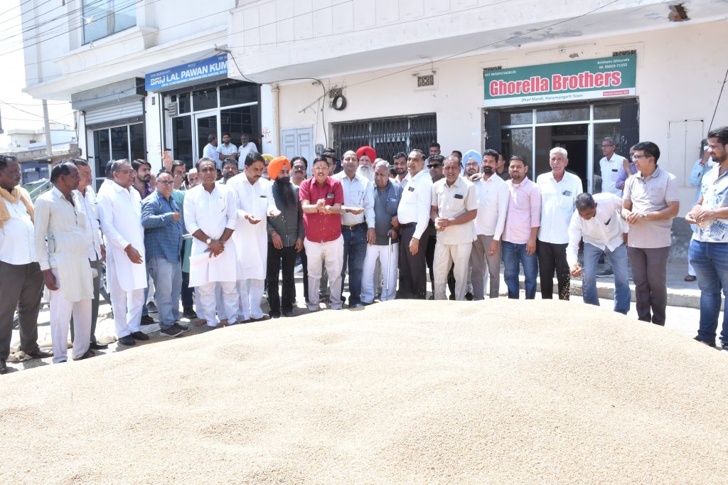 श्री सुमित रिणवा जी पूर्व सभापति नगर परिषद हनुमानगढ़ , कृषि ऊपज मंडी समिति के श्री विष्णु दत्त शास्त्री जी एडिसनल डायरेक्टर , श्री चिमन लाल वर्मा जी सचिव कृषि ऊपज मंडी समिति हनुमानगढ़ टाउन रामलाल किरोडीवाल अध्यक्ष फ़ूडग्रेन द्वारा टाउन मंडी की दूकान घोडेला ब्रदर्स से किसान कृष्ण घोडेला पुत्र श्री नत्थूराम घोडेला को माला पहना कर गेहूं की खरीद FCI के किस्म निरीक्षक परमिन्द्र सिंह, दीपक सैनी ओ पी मीणा मेनेजर FCI FSD हनुमानगढ़ टाउन द्वारा श्रीगणेश किया गया I