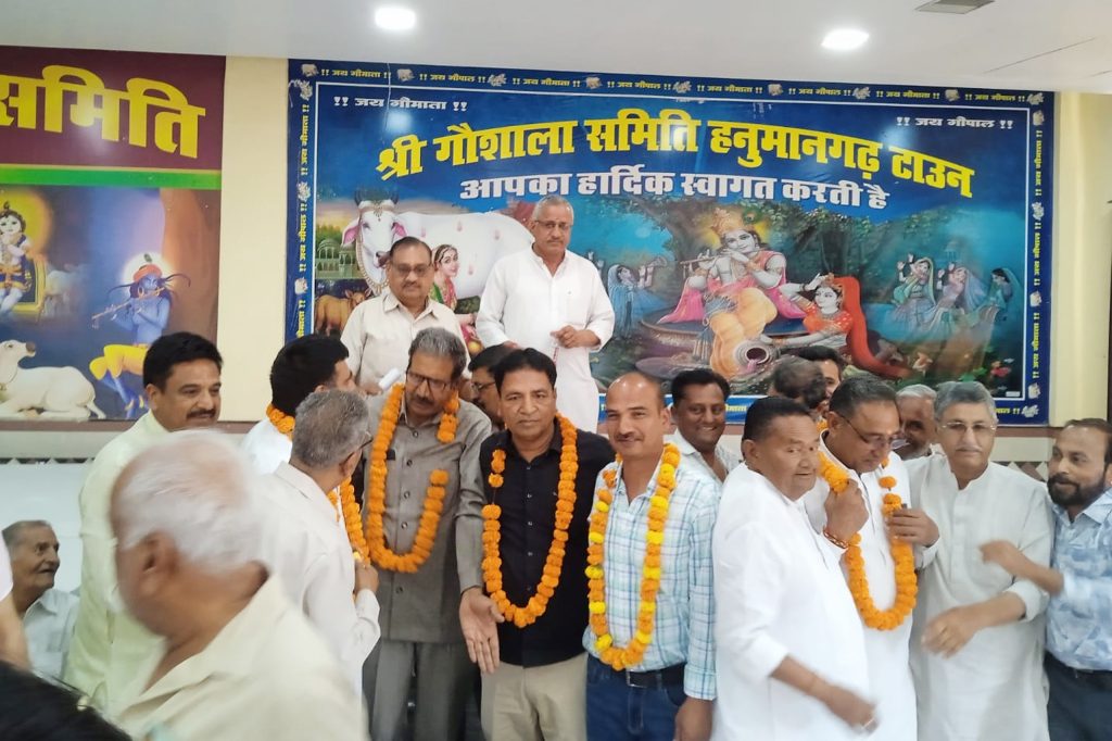 हनुमानगढ़। रविवार, दिनांक 12 अप्रैल 2026 को प्रातः 10.00 बजे श्री गौशाला समिति, हनुमानगढ़ टाउन में वार्षिक आम सभा का आयोजन किया गया। सभा में बड़ी संख्या में गौभक्तों एवं व्यापारियों ने भाग लिया। कार्यक्रम की अध्यक्षता ओम जी हिसारिया ने की। इस अवसर पर समिति के सचिव रमेश जुनेजा द्वारा वर्ष 2024-25 एवं 2025-26 का विस्तृत लेखा-जोखा प्रस्तुत किया गया, जिसे उपस्थित सदस्यों ने ध्यानपूर्वक सुना और अनुमोदित किया। सभा के दौरान वर्ष 2026-27 एवं 2027-28 के लिए नई कार्यकारिणी का सर्वसम्मति से गठन किया गया। इसमें मनोहरलाल बसंल को लगातार 12वीं बार अध्यक्ष पद की जिम्मेदारी सौंपी गई, जो अपने आप में एक उल्लेखनीय उपलब्धि है। इसके साथ ही सुनील गोयल को सचिव, संजय सर्राफ को उपाध्यक्ष, अशोक खुराना को कोषाध्यक्ष तथा गितेश जैन को सहसचिव नियुक्त किया गया। इस अवसर पर फूडग्रेन मर्चेन्ट एसोसिएशन के अध्यक्ष रामलाल किरोड़ीवाल, सचिव दलीप सिंह ढिल्लो सहित कई प्रमुख व्यापारी एवं गणमान्य व्यक्ति उपस्थित रहे। सभा में मोटी तलवाड़िया, सहदेव अजीपुरिया, धनश्याम भादू, राधेराम काजला, संतलाल जिंदल, अजय सर्राफ, दिनेश जैन, विजय रौंता, नरोतम सिंगला, अशोक जिंदल, अमृतलाल गर्ग, राधेश्याम मुण्डेवाला, राजू मित्तल, इन्द्राज देग, पवन खदरिया, सज्जन बसंल, लालबहादुर सिंगला, प्यारेलाल गोयल, कृष्ण अग्रवाल, रमेश काठपाल, मोहित जैन, विमल जैन, बालकृष्ण कर्मचंदानी, मेजर सिंह, भजनलाल, पवन बसंल, सोहन सिंह, नरेश सिंगला, रघुवीर गोदारा, आशीष गोदारा, राजकुमार सोड़ा, हरदयाल सिंह, अरुण कामरा, मोहित गर्ग, योगेश गर्ग सहित अन्य गणमान्य लोग मौजूद रहे। वक्ताओं ने अपने संबोधन में मनोहरलाल बसंल की सराहना करते हुए कहा कि उन्होंने पूर्ण जिम्मेदारी और समर्पण के साथ गौशाला की सेवा की है। गौशाला के रखरखाव एवं गौसेवा के प्रति उनकी निष्ठा को देखते हुए उनका 12वीं बार अध्यक्ष बनना गर्व की बात है। उन्होंने विश्वास जताया कि मनोहरलाल बसंल आगे भी इसी प्रकार गौशाला के विकास में अपना महत्वपूर्ण योगदान देते रहेंगे। सभा के अंत में उपस्थित सभी व्यापारियों एवं गौभक्तों ने नई कार्यकारिणी का माला पहनाकर एवं मिठाई खिलाकर भव्य स्वागत किया। कार्यक्रम सौहार्दपूर्ण वातावरण में संपन्न हुआ।
