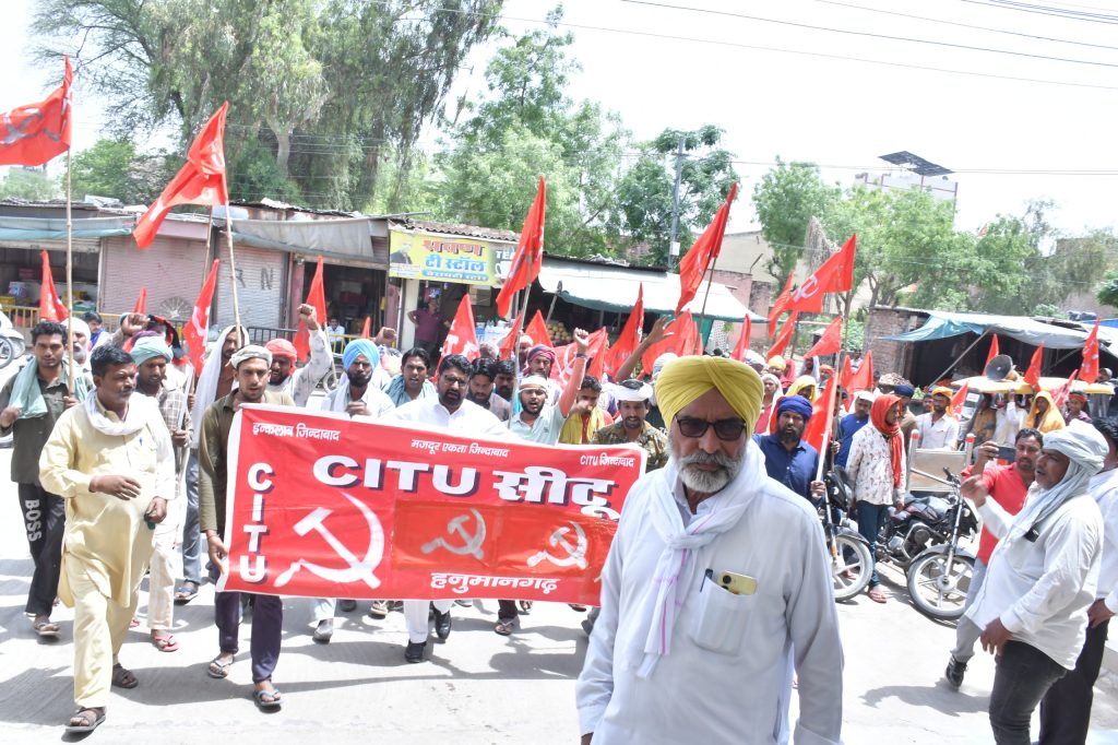 हनुमानगढ़। एफसीआई, अनाज मण्डी व राज सीड्स मजदूर यूनियन सीटू के बैनर तले मंगलवार को सीटू कार्यालय से टाउन थाना तक रोष मार्च निकाला गया। सैकड़ों मजदूरों ने हाथों में बैनर और तख्तियां लेकर शांतिपूर्ण तरीके से मार्च करते हुए मजदूरों पर हो रहे कथित दमन के खिलाफ आवाज बुलंद की। मार्च के बाद टाउन थाना के समक्ष विरोध प्रदर्शन किया गया और सीटू जिलाध्यक्ष आत्मा सिंह व बहादुर सिंह चौहान के नेतृत्व में थानाधिकारी के माध्यम से राष्ट्रपति के नाम ज्ञापन सौंपा गया।