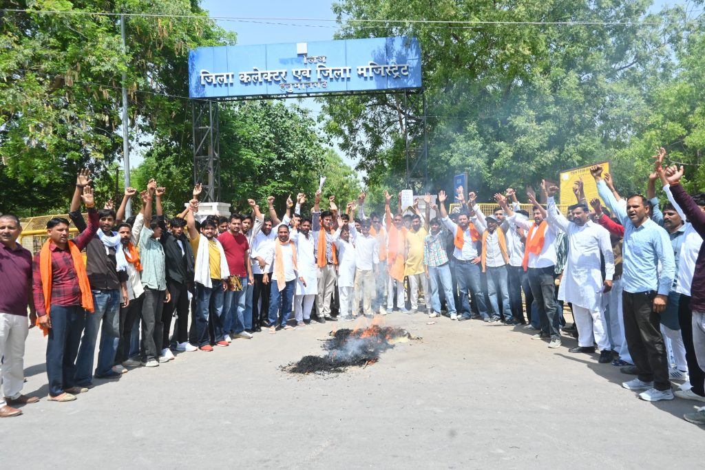 हनुमानगढ़। आज बजरंग दल के बैनर तले कार्यकर्ताओं द्वारा देश में बढ़ रही कथित जिहादी मानसिकता एवं उससे जुड़ी गतिविधियों के विरोध में जोरदार प्रदर्शन किया गया। इस दौरान कार्यकर्ताओं ने आक्रोश व्यक्त करते हुए पुतला दहन किया तथा नारेबाजी कर विरोध दर्ज कराया।