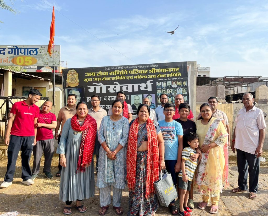 इस अवसर पर किशन खारीवाल, राकेश सिंघल, नितिन खारीवाल, रोहित अग्रवाल, अनमोल सिंघल, प्रिन्स गोयल, सुरेन्द्रपाल सिंघल, अनिल बंसल, नरेन्द्र गोयल, विपुल गर्ग, हृदयान मिश्रा, दिनेश गोयल, सन्तोष खारीवाल, रितू गोयल, अनू बंसल, स्वीट मिश्रा सहित अग्र सेवा समिति, युवा अग्र सेवा समिति तथा महिला अग्र सेवा समिति परिवार पदाधिकारी सदस्य एवं गौसेवक उपस्थित थे।