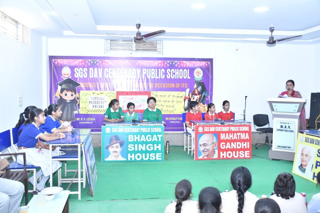हनुमानगढ़। डीएवी विद्यालय में पंचायती राज दिवस के अवसर पर “अंतरसदनीय प्रश्नोत्तरी प्रतियोगिता” का आयोजन उत्साहपूर्ण और ज्ञानवर्धक वातावरण में किया गया। इस अवसर पर विद्यालय के विद्यार्थियों ने बढ़-चढ़कर भाग लेते हुए पंचायती राज व्यवस्था से जुड़े विषयों पर अपनी समझ और जानकारी का उत्कृष्ट प्रदर्शन किया।